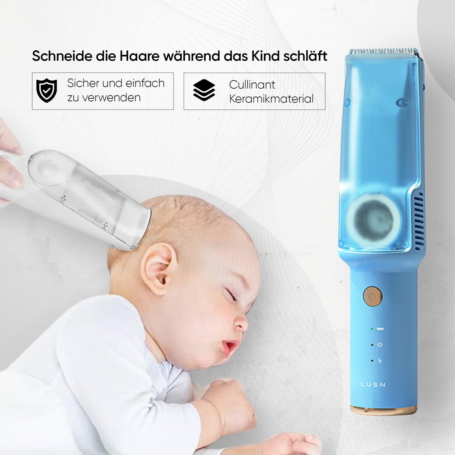 Lusn– der sanfte Haarschneider mit Vakuum-Funktion für Babys & Kinder